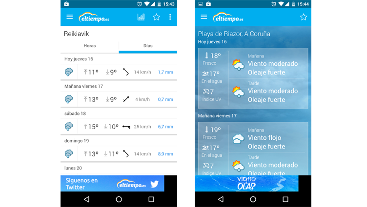 • ElTiempo.es: Ten siempre la información meteorológica a mano, sea cual sea tu destino. El tiempo.es es una de nuestras preferidas por la claridad y sencillez de su interfaz y porque acierta bastante con sus predicciones. Da previsión detallada y por horas y a más largo plazo para los próximos 15 días.