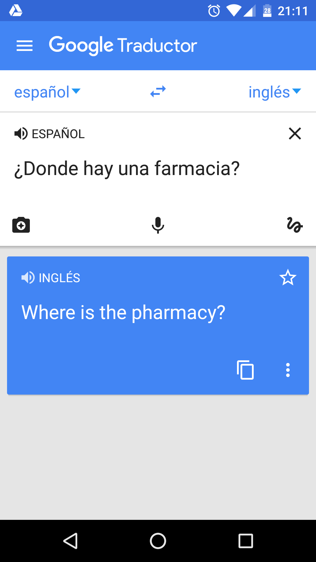 • Traductor de Google: Aplicación muy importante si viajamos al extranjero. Nos sirve para entender y para hacernos entender. Es interesante la función de reconocimiento de voz y la función inversa, para «pronunciar» la frase traducida. Lo malo es que sólo funciona con conexión a Internet.