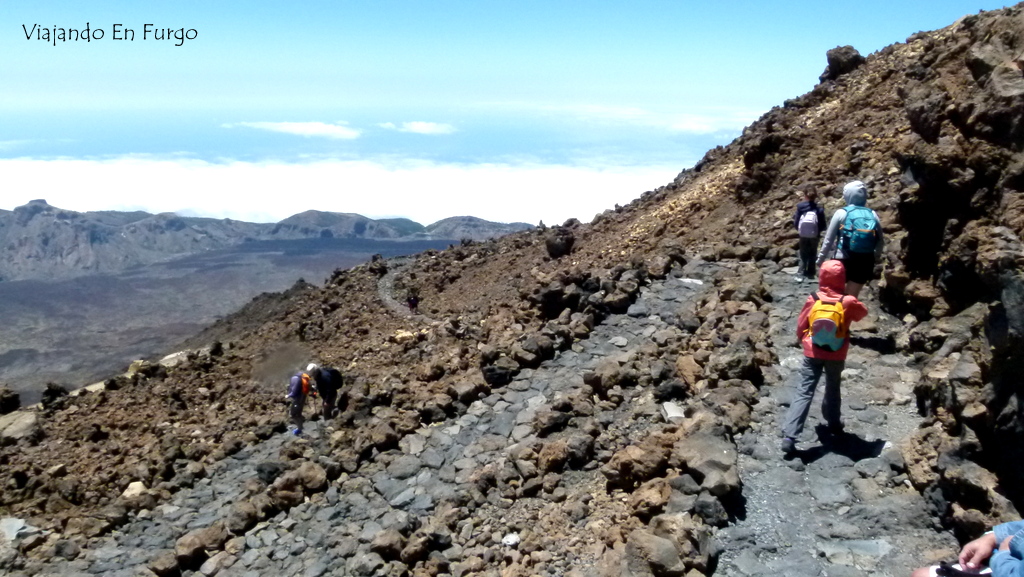 Otra cosa que hay que tener en cuenta es que estamos a mucha altitud y hay gente que presenta síntomas de mal de altura (dolor de cabeza, vómitos). Por eso no se recomienda el ascenso a personas con problemas del corazón o pulmonares, mujeres embarazadas o niños menores de 2 años. En caso de sentir algún síntoma es bajar un poco hasta encontrarnos mejor, y si perduran no continuar con el ascenso.