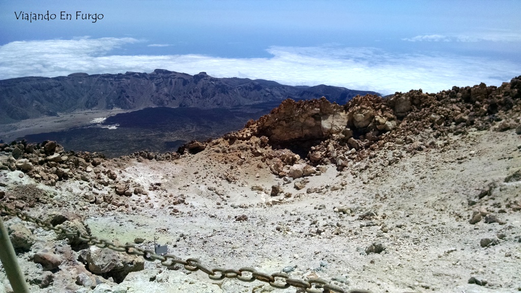 Una vez aquí puedes hacer las rutas de los miradores libremente, la del Mirador de la Fortaleza y el Mirador Pico Viejo, que es la ruta que realizamos antes de ascender a la cumbre. El camino te lleva hasta el cráter de Montaña Chahorra o Pico Viejo, donde se produjo la última erupción del Teide en 1798.