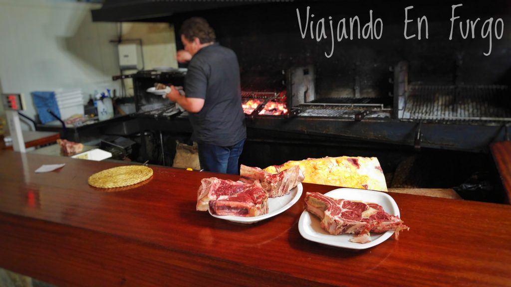 En un extremo del salón una gran parrilla, con el carbón al rojo vivo, a la espera que se cubra de ricos chuletones.