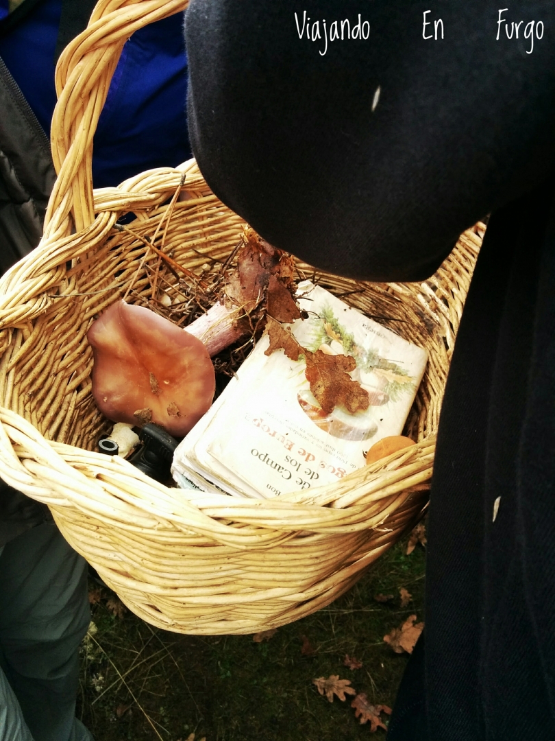 Desde allí anduvimos para adentrarnos en el bosque de robles, pinos y castaños con nuestras cestas colgadas del brazo. Nos separamos entre ellos buscando el boletus perdido. Alguno hubo pero pocos. Muchas setas no comestibles o de poco valor gastronómico son las que más vimos. Ismael, nuestro guía micólogo, nos explicaba todas las setas que íbamos encontrando. Parece ser que este año, relativo a setas, será igual de malo que el pasado. Pero, lo que yo digo: las setas son el pretexto para pasear por el campo y disfrutar de los colores que nos ofrece el otoño.